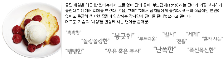 여자들이 섹스를 잘 알게 될수록 점점 스킬이나 정력보다 배려나 애정을 더 바라게 되듯, 남자들도 나이가 들수록 섹스 취향이 바뀐다. 코스모 전문가들에 따르면 젊은 남자들은 그저 섹스를 한다는 사실만으로도 흥분하는 반면, 30대에 접어든 남자들은 보다 깊은 유대감을 필요로 하고 지루한 섹스와 맞서 싸울 여러 가지 방법이 필요해진다고 한다. 즉 남자들은 나이가 들수록 섹스에 대한 모험심이 강해지며 여자에 대한 배려심과 관대함이 커진다는 얘기! 그래서 코스모가 파헤쳤다. 30대 남자들이 원하는 섹스에 대한 모든 것.
