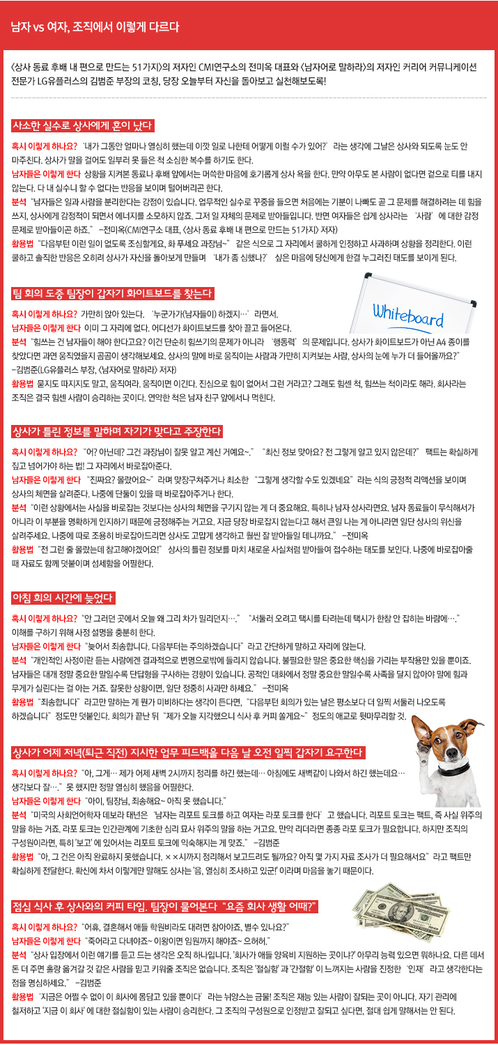세상은 여자를 응원하겠노라 격려의 말을 보낸다. 하지만 분명한 것은, 대부분의 기업과 사회 조직은 여전히 ‘남성 리더’에 의해 ‘남성 중심’으로 돌아가고 있다는 사실이다. 우리네 여자들이 조직 안에서 남성 리더들을 효과적으로 설득하며 동등한 기회를 부여받기 위해서는, 남자들의 화법과 행동 방식을 벤치마킹할 필요가 있다는 얘기다.