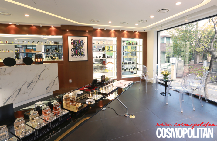 그 중 코스모 독자들을 위해 몇 가지 향수를 추천해달라고 부탁했어요. 그가 가장 먼저 추천한 브랜드는 바로 ‘킬리안’. 코냑으로 유명한 브랜드 헤네시 아시죠? 이 헤네시 가문의 손자이자 LVMH 그룹의 상속자인 조향사 킬리안 헤네시가 직접 만든 럭셔리 향수 부티크가 바로 킬리안 입니다. 보틀도 그에 걸맞게 블랙의 고급스럽고 묵직한 느낌이죠. 제가 시향한 향은 아시안 라인의 플라워 이모탈리티였는데 정말 투명하고 깨끗한 향이었어요. 보틀을 봤을 때의 예상과는 다르게 향이 무겁거나 어렵지 않아서 깜짝 놀랐죠. “시간이 갈수록 아마 향이 더 깨끗해질 거에요. 마치 물가에 복숭아 꽃이 휘날리는 느낌이 들지 않으세요? 같은 복숭아, 자두 노트라도 킬리안의 노트는 정말 우아하고 고급스럽죠. 킬리안은 향료 버짓의 제한을 따로 주지 않고 조향사들에게 전권을 주는 것으로 유명해요.” 그래서 가장 싼 향수가 30만원 대일 정도로 비싸지만, 최근 유럽, 러시아, 중동 지방에서 불티나게 팔리고 있다고 해요.