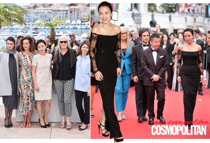 심사위원 자격으로 칸 영화제에 간 전도연. 낮엔 2010년 S/S 샤넬의 오뜨 꾸뛰르 컬렉션의 레이스 드레스를, 밤엔 베르사체의 2014 프리폴 시즌 드레스를 입고 등장했다. 그녀의 칸 영화제 드레스 선택 결과는? 낮이밤이!