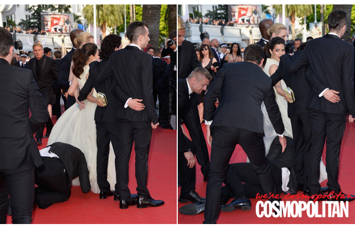 <드래곤 길들이기2> 팀과 레드 카펫에서 포즈를 취하는 아메리카 페레라. 국내에선 어글리베티로 유명한 그녀의 드레스 속에 우크라이나 출신 리포터가 난입했다. 알고 보니 그는 윌스미스의 볼에 키스를 했다가 따귀를 맞기도 했었다고!