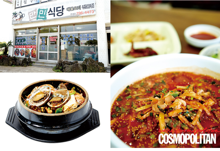 제주도민들이 자주 가는 해물 요리 전문점. 올해로 13년째 한자리를 지키는 ‘만민식당’에서 가장 인기 있는 메뉴는 새우와 오분자기, 홍합, 게, 조개가 한가득인 해물전골과 전복뚝배기다. 한 명이라면 전복뚝배기를, 여러 명이라면 푸짐한 해물전골을 추천한다. 각종 해산물에서 우러난 천연 재료의 국물 맛을 한번 맛보면 술이 술술술 들어갈 것이다.