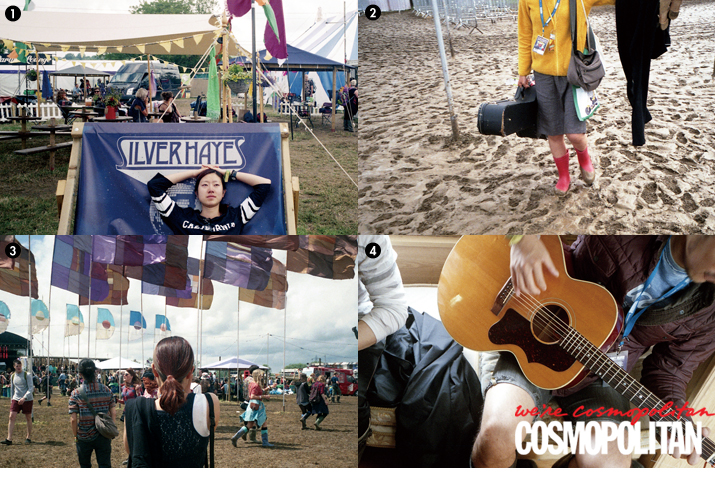 1 실버 헤이즈의 아티스트 존. 떠나는 날 아침, 여기서 보낸 시간을 떠올리고 있다. 2 공연장으로 이동하는 길. 진흙이 미끄러워 몇 번을 넘어질 뻔…. 3 실버 헤이즈 존에 입성한 순간, 감격하며 풍경을 담아보는 중. 4 촬영감독 심건, 캐러밴에서 휴식 중!