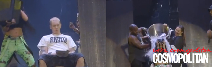 도전하는 사람이 모른 채 진행되는 아이스버킷 챌린지도 있다. 그동안 수많은 동료 가수들이 지목해도 무시로 일관했던 리한나와 에미넴이 디트로이트에서 콘서트 도중 꼼짝없이 아이스버킷 챌린지에 도전하게 된 것이다. 먼저 에미넴이 무대위에서 영문도 모른채 자리에 앉힌(?) 채 얼음물 세례를 받았다. 물 맞기 전에 잔뜩 얼어 움찔대는 모습은 가히 일품! 이 모습을 보며 키득대던 리한나는 이날 준비된 아이스버킷 중 가장 큰 특대 사이즈로 당했다는 후문이 전해진다. 출연진 오도가도 못하게 아이스버킷 챌린지 벌린 제작진들, 대단해요~