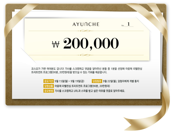 이런 고민, 예전엔 안 했습니다. 머리카락이 수없이 빠져도 언제나 숱은 넘치게 많았고, 머릿결에 특별히 뭘 하지 않아도 언제나 윤기가 반지르르 흘렀죠. 그러나! 20대가 후반으로 치달으면서 보니 이제 저절로 얻어지는 건 없더군요. 두피는 간질간질, 모발은 거칠거칠. 바로 이때 프리미엄 헤어 케어 브랜드 <아윤채>의 두피 케어를 살롱에서 직접 받아볼 수 있다는 반가운 소식이 도착했습니다. 어시스턴트 에디터 송예인의 체험 후기를 들어보시겠어요?