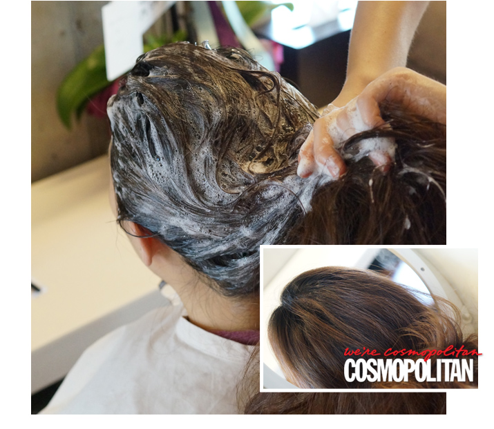 두피 진단을 마치고 나면 두피에 있는 독소를 빼내는 '비움'의 단계를 거치게 됩니다. 두피 내의 묵은 각질을 제거하고 진정의 효과를 주는 디톡스 필링 제품을 두피 구석구석 도포해서 기름기를 먼저 제거해요. 화장 지울 때 딥 클렌징 하는 것과 마찬가지. 시술이 끝난 뒤엔 스티머로 10분 정도 방치해 모공을 열어줍니다. 다음으로 좌식 샴푸를 진행하는데요, 샴푸실이 아닌 자리에서 진행하는 거라 약간 어색했어요. 일반적인 샴푸와는 달리 두피 테크닉과 함께 샴푸를 바로 씻어내지 않고 몇 분 정도 방치해야 하기 때문이라고 해요. 두피를 끌어올려 튕기는 듯한 아윤채의 마사지 테크닉이 어찌나 시원하던지. 머리가 상쾌해지면서 피가 활발히 도는 것 같달까? 누워서 받는 샴푸와는 또 다른 느낌이었어요.