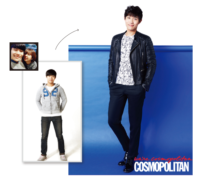 자동차 딜러인 그는 후드 집업에 데님 팬츠를 입고 스튜디오에 들어섰다. 여전히 학생 같은 풋풋한 모습이 남아 있는 그를 본 스타일리스트는 라이더 재킷을 꺼내며 말했다. “라이더 재킷은 의외로 펑키하게도, 성숙하게도 연출할 수 있는 아이템이랍니다. 스키니 팬츠 대신 슬랙스를 더하면 훨씬 모던하게 연출할 수 있어요. 단, 몸매가 하체보다 상체가 큰 편이니 밸런스를 맞추는 게 중요해요. 타이트한 팬츠를 입으면 몸집이 훨씬 커 보일 수 있거든요.” 이처럼 도시적인 록 시크 룩을 입을 때 헤어스타일은 어떻게 하는 게 좋을까? “눈썹을 덮는 앞머리는 어려 보이기는 하지만 피부가 까만 편이라 답답해 보일 수 있어요. 이마 전체를 드러내는 게 부담스럽다면 윗머리만 텍스처를 살려보는 건 어떨까요? 인상도 훨씬 밝아 보일 거예요.” 헤어 스타일리스트의 손을 거쳐 변신하는 동안 여자 친구는 남친에게서 눈을 떼지 못하는 모습이었다. “아직은 콩깍지가 씌여 다 멋있어 보이는 거 같아요. 그래도 색다른 모습을 보니 처음 만난 날처럼 설레네요.”