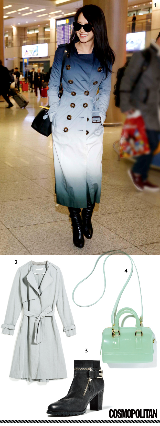 1. 송지효 버버리 프로섬의 트렌치코트에 빅 프레임 선글라스로 포인트를 준 그녀. 2. 29만9천원 지컷 3. 23만8천원 지니킴 4. 29만원 훌라