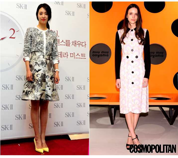 두 아이의 엄마라는 사실이 믿겨지지 않는 몸매. 화사한 플라워 패턴의 끌로에 드레스에 깔끔한 화이트 토트백을 더했다.