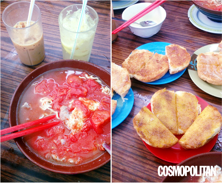 Sing Heung Yuen 토마토 파스타가 아닌 토마토 국수. 고기육수로 맛을 낸 국물에 라면 혹은 마카로니를 선택해서 먹을 수 있다. 금귤을 갈아 소금을 살짝 넣은 에이드와 연유 바른 토스트도 곁들이면 좋다.