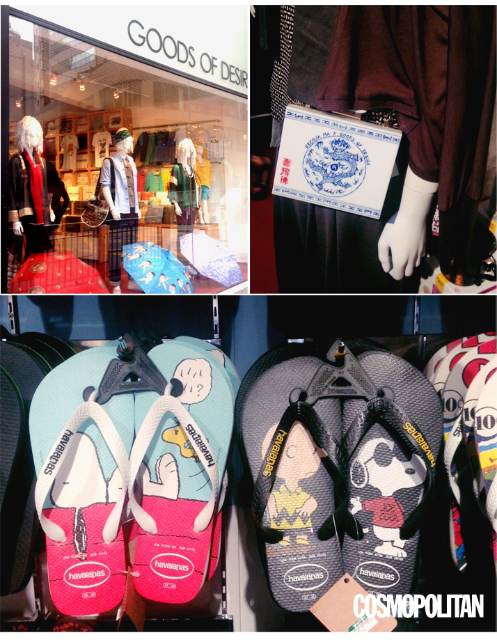 Goods of Desire ‘홍콩에서만 살 수 있는 패션 아이템 뭐 없을까?’ 둘러보다가 발견한 곳. 하바이아나스와 스누피 컬래버레이션 플립플랍과 오리엔탈 풍 클러치는 서울로 당장 데려오고 싶었던 아이템!