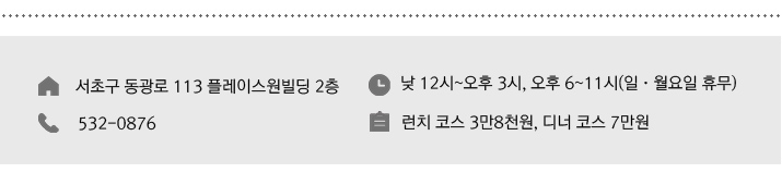 제로컴플렉스는 숫자 0의 집합체를 의미한다. 이름에서부터 모던함이 묻어나는 이곳은 네오-비스트로를 콘셉트로 한 프렌치 레스토랑이다. 이충후 오너 셰프는 프랑스에서 요리를 공부하고 르 샤토브리앙과 르 드팡에서 일했다. 실험적이면서도 어깨에 힘을 뺀 프렌치 메뉴로 파리의 미식계를 들썩이게 한 레스토랑들 말이다. 서래마을 번화가에서 조금 떨어져 조용한 이곳에서 이충후 셰프는 매주 새로운 코스 메뉴를 제안한다.
