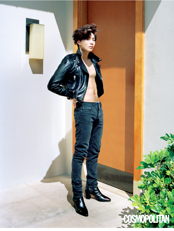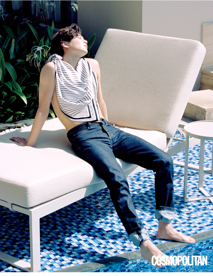 이번 화보 촬영을 위해 이마를 드러내고 데님 룩을 한 모습을 보니 언뜻 젊은 시절의 제임스 딘이 떠올랐다. 최근 데인 드한이 제임스 딘 역할로 영화를 촬영하고 있는데, 아마도 이런 모습이 아닐까? 극 중에서 누군가로 변신해볼 수 있다면 누가 좋을까?