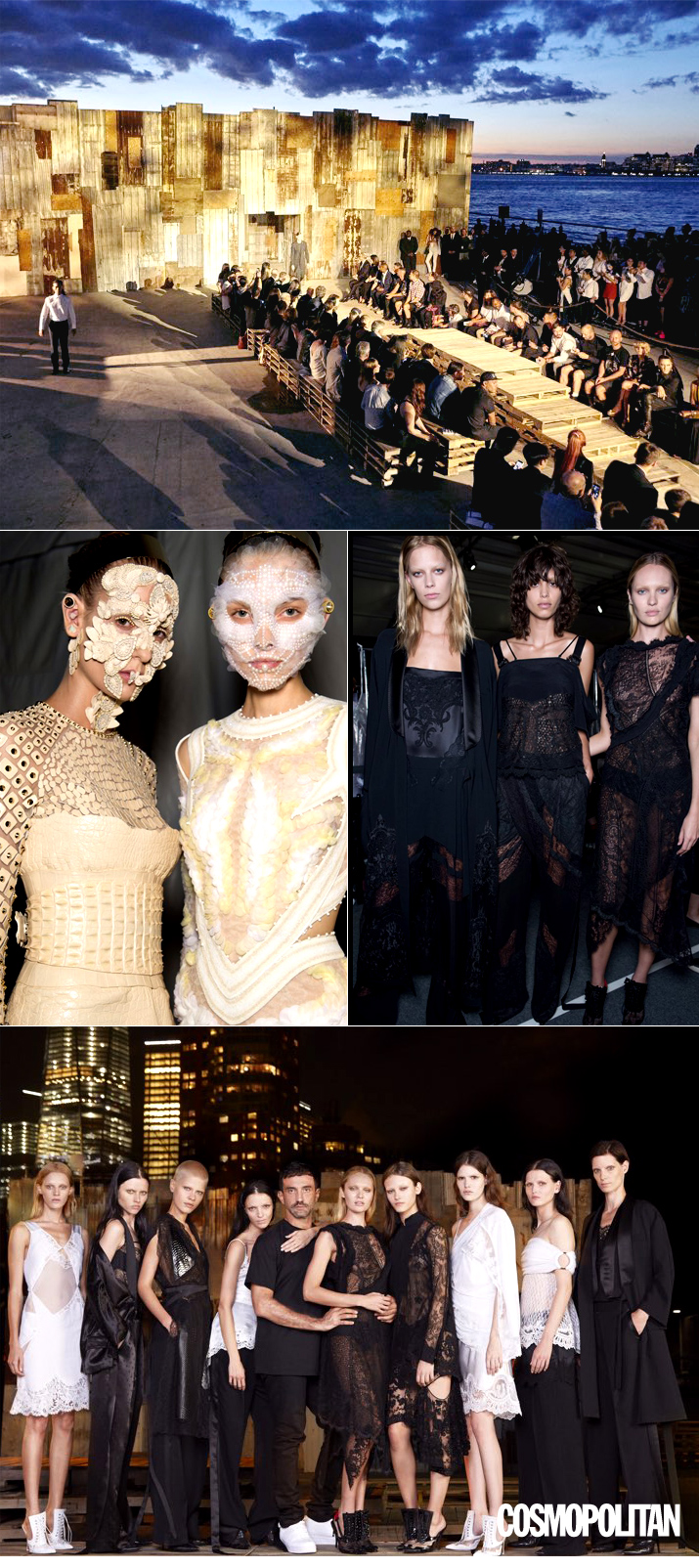 지방시 쇼가 시작된 날은 9월 11일. 9.11 사건이 일어난 트리베카의 허드슨 강 주변에서 열렸죠. 이번 쇼의 주제는 ‘사랑과 나눔'. 그 의미에 걸맞게 패션쇼 무대는 재활용 소재들로 제작되었고 프레스와 VIP만 초청되던 패션쇼는 패션 학교 학생부터 동네 주민들까지 초청되었답니다. 게다가 소호와 타임 광장에서 실시간으로 중계되기도 했죠. 옷은 어땠냐고요? 슬립 드레스, 테일러링이 돋보이는 실크 소재 재킷을 활용해 부드러우면서도 힘있는 룩들이 선보여 그만의 장기를 한눈에 볼 수 있었답니다.