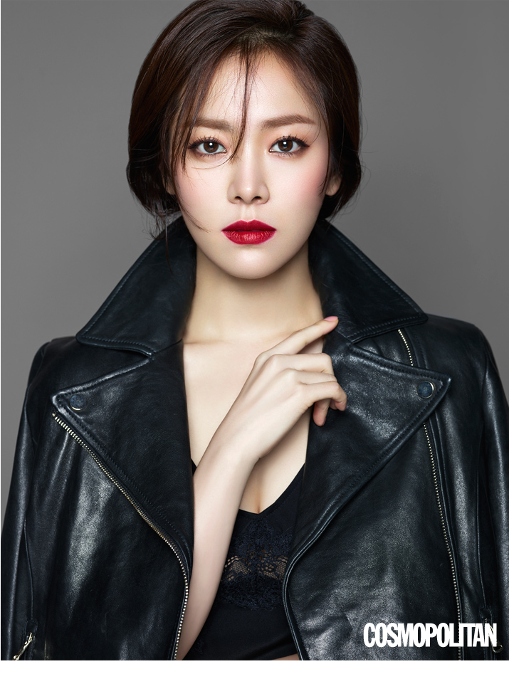레드만큼 다양한 표정을 지닌 컬러가 있을까? 어떤 채도의 레드를 바르느냐에 따라 순수한 룩부터 고혹적인 룩까지 다양한 변신이 가능하다. 한지민이 선택한 컬러는 레드 립스틱의 정석이라 할 수 있을 정도로 높은 채도의 선명한 발색을 자랑하는 랑콤의 압솔뤼 루즈 데피니션 마틸다 레드. 비비드한 레드 립스틱에 블랙 아이라인을 매치하면 블랙 라이더 재킷이 딱 어울리는 도시적이고 시크한 룩을 연출할 수 있다.라이더 재킷 마시모두띠. 슬립 원피스 유니클로×카린 로이펠트