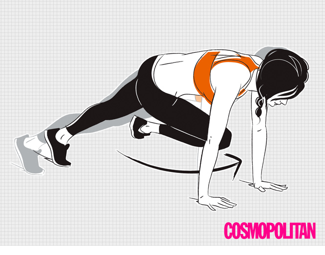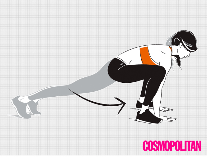 3. 손바닥으로 바닥을 밀며 제자리로 올라온다. 이 동작을 60초간 반복한다.