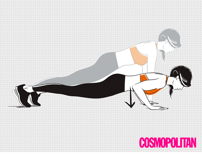 2. 팔꿈치를 굽혀 갈비뼈와 높이가 같아지도록 몸을 낮춘다.