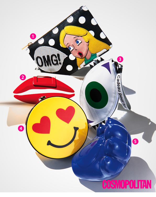 보는 순간 미소가 지어지는 팝아트 클러치! 동화 속 주인공부터 이모지, 동물의 발바닥을 모티브로 한 것 등 위트 있는 클러치를 더하면 무심한 표정을 한 시크녀도 의외의 매력을 발산할 수 있을 듯.