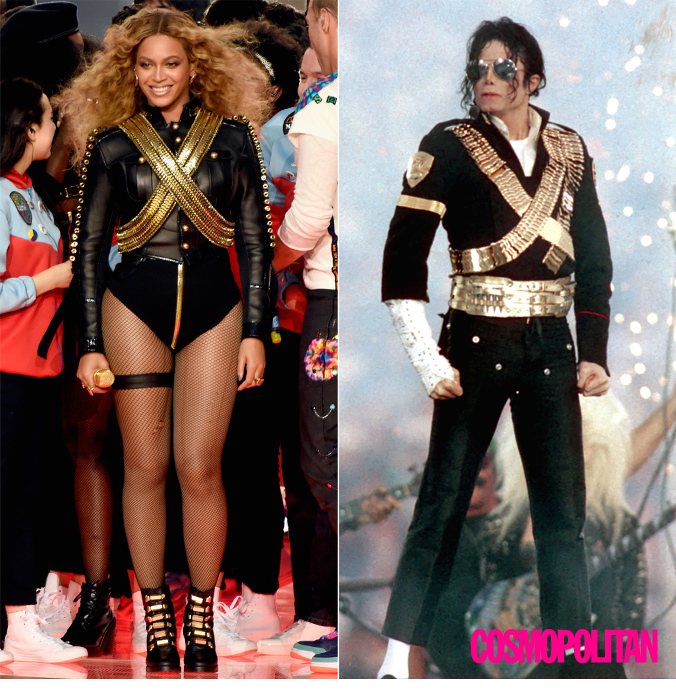 슈퍼볼 경기보다 더 화제가 됐던 비욘세의 공연. 그녀는 디스퀘어드2 의상을 입고 1995년 마이클 잭슨이 슈퍼볼 공연에서 입었던 입은 의상을 오마주했답니다.