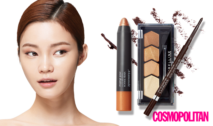 (왼쪽부터)마몽드 비비드 터치 스틱 섀도우 3호 에브리데이 8천원. 메이블린 뉴욕 아이스튜디오 다이아몬드 글로우 섀도우 01 코퍼 브라운 1만5천원대. 크리니크 스키니 스틱 슬림 세이블 2만4천원대.