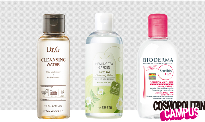 닥터지 클렌징 워터 1만원 / 더샘 힐링 티 가든 그린티 클렌징 워터 5천5백원 / 바이오더마 센시비오 H2O 2만5천원
