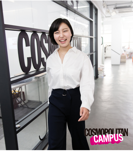 #여자답게 캠페인 영상에서 그렇게 말하잖아요. “여자다운 건 가장 나다운 것”이라고요. 그래서 화장기 하나 없는 민낯이야말로 가장 나다운 모습이고, 사람은 누구나 있는 그대로의 모습이 가장 예쁘고 매력적이라는 메시지를 전달하고 싶었어요. 인터뷰라는 콘셉트는 남자 친구의 아이디어예요. 위스퍼 광고를 보면 간혹 일반인 인터뷰 장면이 나오잖아요. 그걸 모티브로 삼은 거죠. 하하.