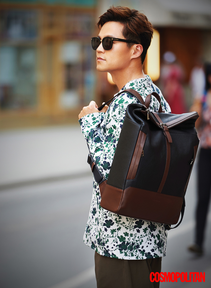 재킷, 팬츠 모두 가격미정 에르메스. 선글라스 59만5천원 톰포드 by 브라이언앤데이비드. 백팩 55만원 브루노말리.