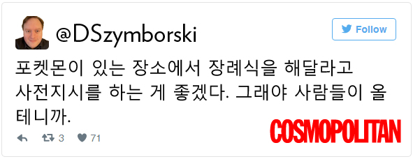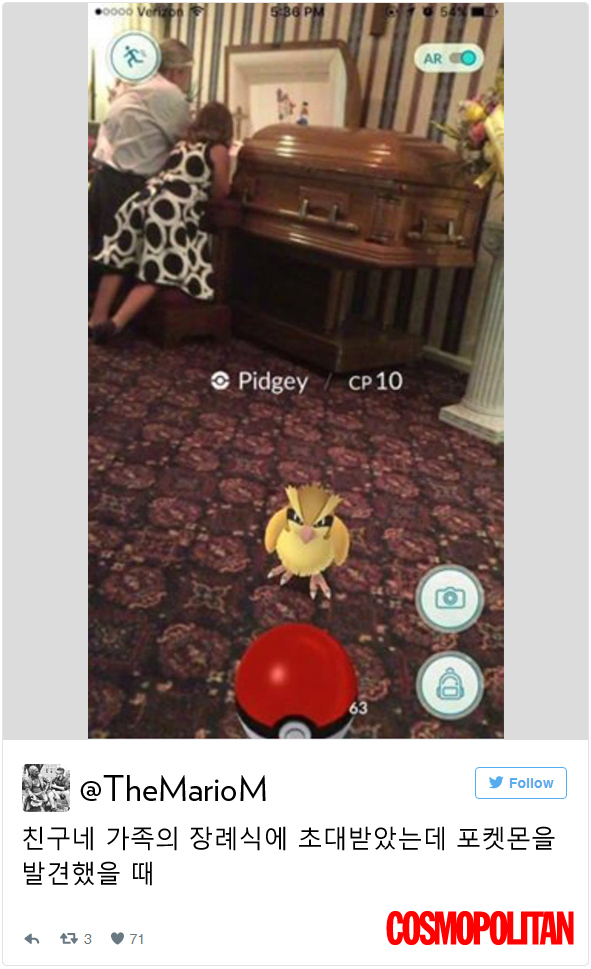 본 기사는 코스모폴리탄 U.S. 웹사이트의 'People Are Now Catching Pokemon at Funerals' 기사를 바탕으로 작성했습니다.