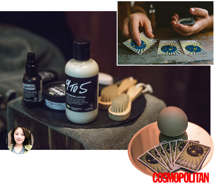 “기존의 스파 방식과 너무 달라 처음에는 당황했지만 마사지 서비스 외에도 고민을 상담하고 차를 마시면서 손금을 봐주는 분위기에 금방 녹아들었다. 잡생각이 사라지고 저절로 스파에만 집중하게 되더라. 마사지 테크닉도 굉장히 좋았지만 분위기에 좀 더 취했던 것 같다. 탱글탱글해진 피부와 러쉬 제품으로 즐기는 샤워 타임까지, 그야말로 완벽한 스파 프로그램이었다!” -에디터 박지원