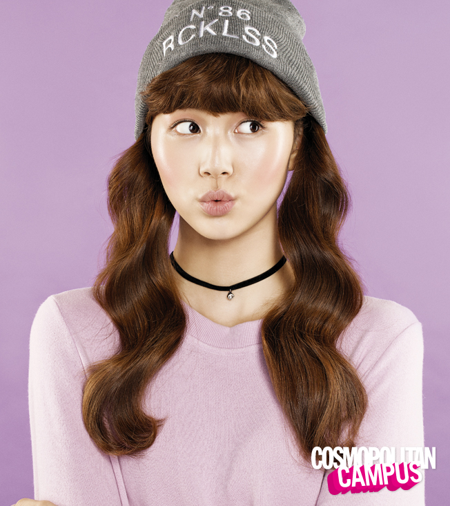 비니에는 곧게 푸른 긴 생머리라는 고정관념은 그만! 풍성하게 앞머리를 내린 굵은 웨이브 스타일에 비니를 더하면 복학생 선배들의 귀여움을 독차지하는 ‘세젤귀’ 후배로 변신할 수 있다. 앞머리 숱은 당장이라도 터져 나올 듯 풍성하게, 목 뒤로 흘러내리는 머리는 풀러두는 것보다 양 갈래로 나눠 묶을수록 귀요미 지수가 높아진다는 점을 기억하자. 비니를 쓸 때 헤어라인보다 살짝 뒤로 당겨 벗겨질 듯 아슬아슬하게 쓸수록 귀요미 지수가 높아진다.