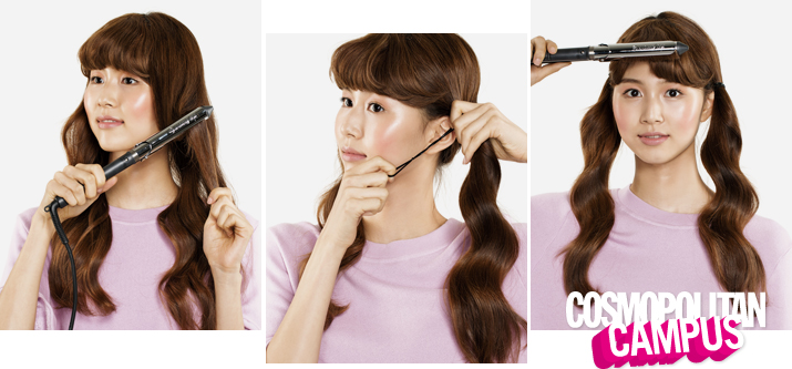 STEP 1 굵은 아이론 스타일링기로 웨이브를 만든다. 모발을 조금씩 잡고 안쪽으로 밀어 넣었다 바깥쪽으로 뺐다가 하는 방식으로 크게 웨이브를 넣을 것.