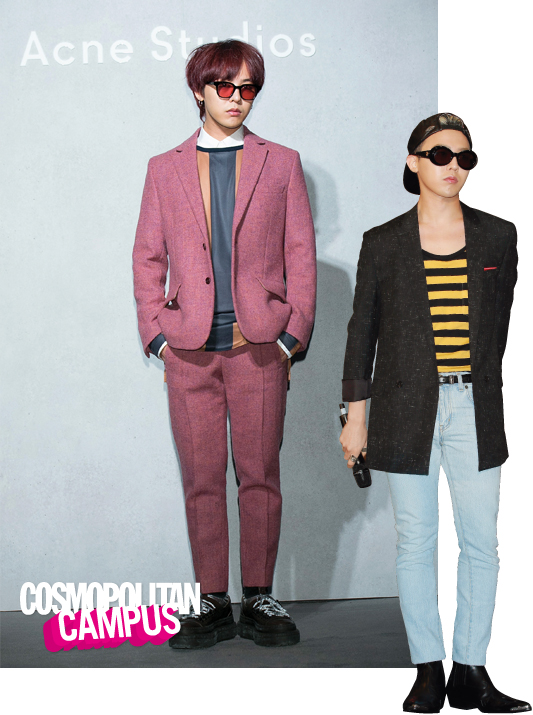 아이돌 패션을 논하면 절대 빼놓을 수 없는 빅뱅 지드래곤. 간혹 일반인들이 범접할 수 없는 과한 패션을 선보이기도 하지만 자신만의 스타일로 완벽하게 소화하는 능력을 가진 그는 진정한 패션왕!