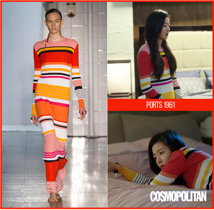 드라마 속 심청이의 짝사랑남 이민호와 첫 데이트를 할 때 그녀가 선택한 건 바로 샤넬 16/17 크루즈 컬렉션! 강렬한 레드 스트라이프 팬츠에 블루 컬러의 재킷을 매치해 오락실 룩으로 완벽하게 매치했다. 런웨이 위의 모델보다 더 완벽한 모습!