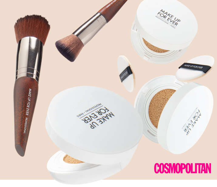 메이크업포에버 UV 브라이트 쿠션은 바르는 툴에 따라 다른 커버리지를 자랑한다. 퍼프를 이용하면 미디엄에서 하이 커버리지를 표현할 수 있고, 프로 4K 브러쉬를 쓰면 내추럴 미디엄 커버리지로 얇고 투명한 피부 연출이 가능하다. 이 브러시는 메이크업포에버의 154 브러쉬를 미니 사이즈로 선보인 것으로, 포뮬러를 보다 섬세하고 밀착력 있게 바를 수 있어 베이스 지속력까지 높여준다.