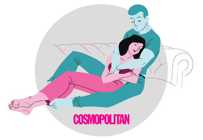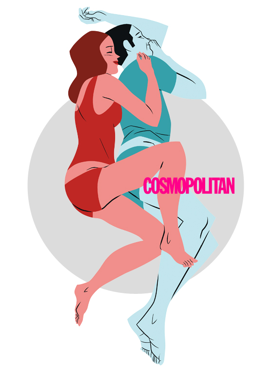 주말에 연인과 함께 집에 늘어져 밀린 예능 프로를 볼 때 좋은 자세. 당신과 상대방 모두 소파에 나란히 옆으로 포개어 눕는다. 이때 그는 당신 뒤에서 한쪽 손으로 머리를 받친 다음 한쪽 다리와 팔을 당신의 허벅지와 가슴 위에 두른다. 옆으로 누워 당신 몸을 꼬옥 껴안는 느낌으로 말이다. 좀 더 편하려면 쿠션을 당신과 그의 머리 아래에 놓으면 된다. 말이 어렵게 들리는데, 그냥 옆의 일러스트대로 하면 된다.