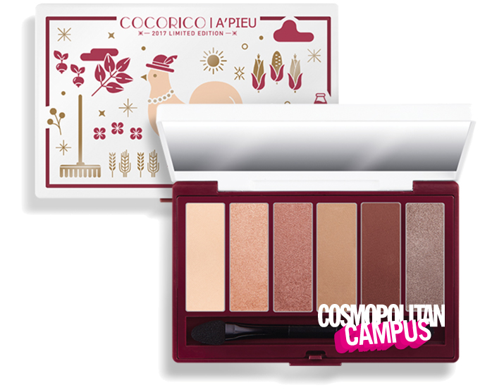 닭의 해를 기념해 출시 된 어퓨의 '코코리코 에디션, 풀 오브 컬러 아이즈'. 2017년이 붉은 닭의 해인 만큼 말린 장밋빛과 와인빛 등 붉은색을 메인 테마로 구성되어 여리여리하면서도 몽환적인 봄의 여신 눈매를 완성할 수 있다.