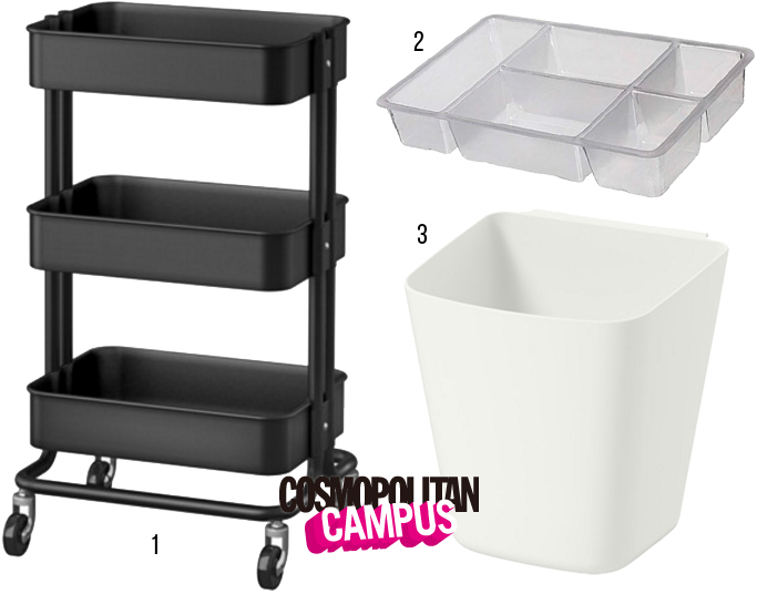트롤리 안에 화장품들을 무질서하게 늘어놓을 수는 없는 법! 투명 인서트를 이용하여 종류별로 화장품을 분리해 정리해보자. 플라스틱 재질이라 관리하기도 용이하다.