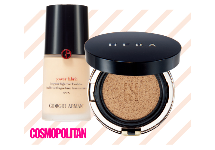 (왼쪽부터)조르지오 아르마니 파워 패브릭 파운데이션 SPF 25 PA++ 8만3천원. 헤라 블랙 쿠션 5만5천원.