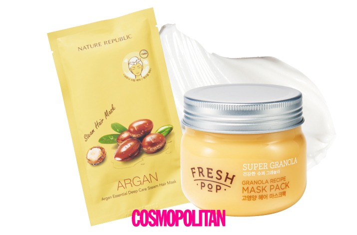 (왼쪽부터) 네이처리퍼블릭 아르간 에센셜 딥케어 스팀 헤어 마스크 4천원. 프레시팝 그래놀라 레시피 마스크팩 1만3천원대.