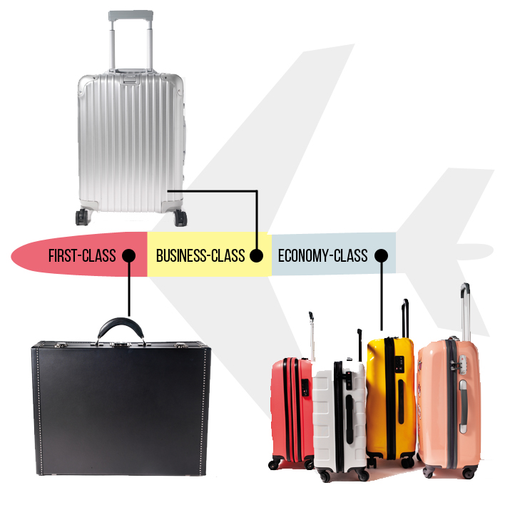 퍼스트, 비즈니스, 이코노미 클래스로 살펴본 여행용 캐리어 이모저모.