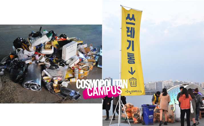 7. 쓰레기통은 주위를 둘러보면 높게 노란 깃발로 “쓰레기통”이라고 써져 있다. 쓰레기통을 계속 비워주시는 분이 있어 굉장히 쾌적하다. 서로를 위해 꼭 쓰레기는 쓰레기통에!