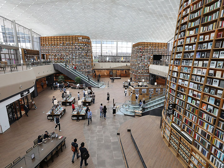 스타필드 코엑스몰에 들어선 별마당 도서관은 실로 엄청나다. 천장까지 솟은 책장에 빼곡히 들어찬 책들은 보고만 있어도 배가 부를 정도!