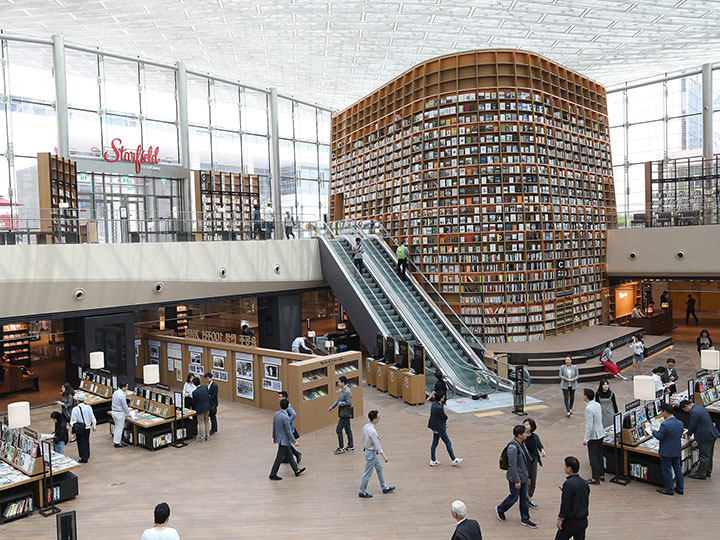 지난 5월 31일, 강남 상권의 랜드마크인 스타필드 코엑스몰에 ‘별마당 도서관’이 오픈했다. 면적 2,800m2에 2개 층으로 구성된 엄청난 공간, 천장까지 이어진 13m 높이의 대형 서가는 ‘읽는 재미’ 뿐만 아니라 ‘보는 재미’까지 선사한다. 높은 책장 3개를 중심으로 배치된 테이블과 책상은 혼자 책을 읽기에도, 휴식을 즐기는 공간으로도 제법 잘 어울린다. 전 장르에 걸쳐 총 5만 여권에 달하는 책을 소장하고 있으며, 아이패드를 활용해 책을 볼 수 있는 최신 E-book 시스템까지 이용할 수 있다. 또 그룹형 커뮤니티 공간도 따로 있어 독서 모임을 진행하기에도 좋다. 물론 누구나 무료로 이용 가능하다.