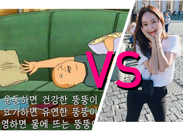 현실▶ 운동하면 건강한 뚱뚱이, 난 오늘도 근육 돼지가 된다. 또르르.
