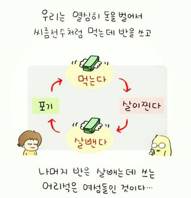 현실 다이어트의 정석! 오늘도 우리는 먹는 데 돈을 쓰고, 그렇게 찌운 살을 빼기 위해 돈을 씁니다.