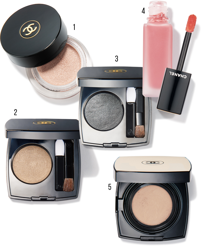 1 샤넬 옹브르 프리미에르 롱웨어 크림 아이섀도 804 생띠앙스 4만7천원. 2 샤넬 옹브르 프리미에르 롱웨어 파우더 아이섀도 32 브론즈 앤틱 4만7천원. 3 샤넬 옹브르 프리미에르 롱웨어 파우더 아이섀도 40 그리 안트라시뜨 4만7천원. 4 샤넬 루쥬 알뤼르 잉크 140 아무흐 4만3천원. 5 샤넬 레 베쥬 헬시 글로우 젤 터치 파운데이션 SPF 25 PA+++ 7만5천원.
