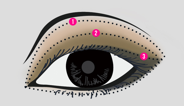 STEP 2 쌍꺼풀 라인에 음영을 더할 차례. 팁 브러시를 사용해 앤티크한 구릿빛 계열의 파우더 섀도를 바른다.