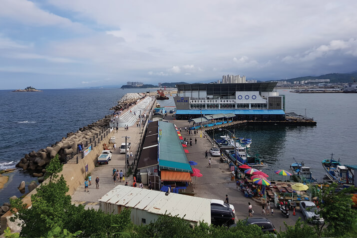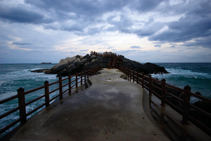 후포항 만약 금강송 숲길을 놓쳤다면 주저하지 말고 후포항으로 발걸음을 옮기자. 바다 안쪽으로 이어진 갓바위 전망대에 오르면 바다에 빠져드는 듯한 스펙터클한 경험을 할 수 있다. 시장기가 돌 때 후포항에서 대게와 물회 잔치를 벌인다면 울진과 사랑에 빠질 수밖에 없을 것이다.