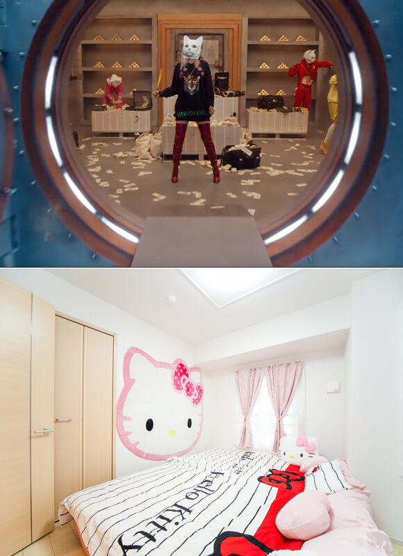 “세상은 새로운 것을 원한다”는 가사에 맞춰 고양이 탈을 쓴 테일러들이 등장한 신에서 떠올린 헬로 키티. 헬로 키티 제품과 슈퍼 닌텐도를 원없이 즐길 수 있는 숙소가 있다. 바로 일본 오사카 남바역에서 3분거리에 위치한 3min 남바스테이션 위드 헬로 키티&게임(3 minutes to Namba station with Hello Kitty & Game)이다. 일렉트릭 타운 게임에서 단 1분 거리에 위치한 점도 게임 마니아의 관심을 충족시키기 충분하다.
