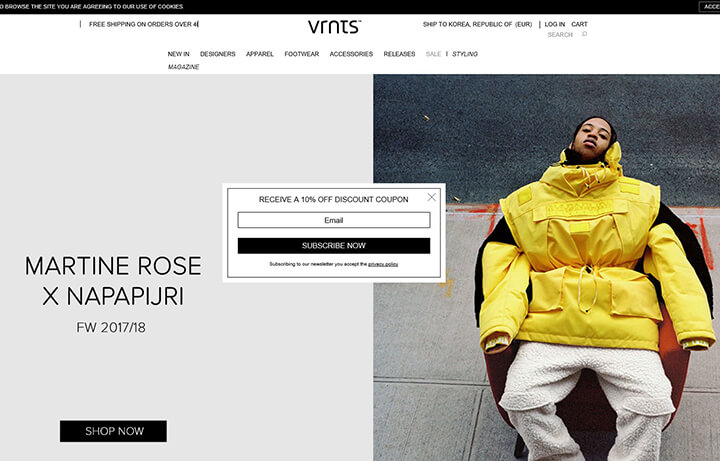 아디다스부터 베트멍, 고샤 루브친스키까지 스포츠부터 스트리트 브랜드까지 다양하다. 제휴된 브랜드의 특성상 남자들의 인지도가 높을 수밖에 없지만 스트리트 스타일을 좋아하는 이들이라면 성별을 나눌 필요가 없다. ‘핫’한 컬래버레이션 제품들도 다수 보유하고 있어 패션을 사랑하는 자들이라면 꼭 방문해보길 권한다. 회원가입 후 전달되는 메일링 서비스와 추가 할인도 적극 활용할 것.